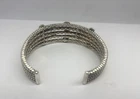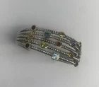 Beautiful sterling Silver 925 14K Blue Topaz Citrine Peridot Cuff Bracelet.- This bracelet weighs 38.7 grams and is still in beautiful condition and has minimal wear. - It is also a pretty standard size around a size 7 it will fit. - Stamped 14k and 925 , It has 3 yellow stones, 3 red stones, 3 blue stones, 2 purple and 2 green stones. Please look at all of the photos carefully and feel free to message me with any questions you may have.