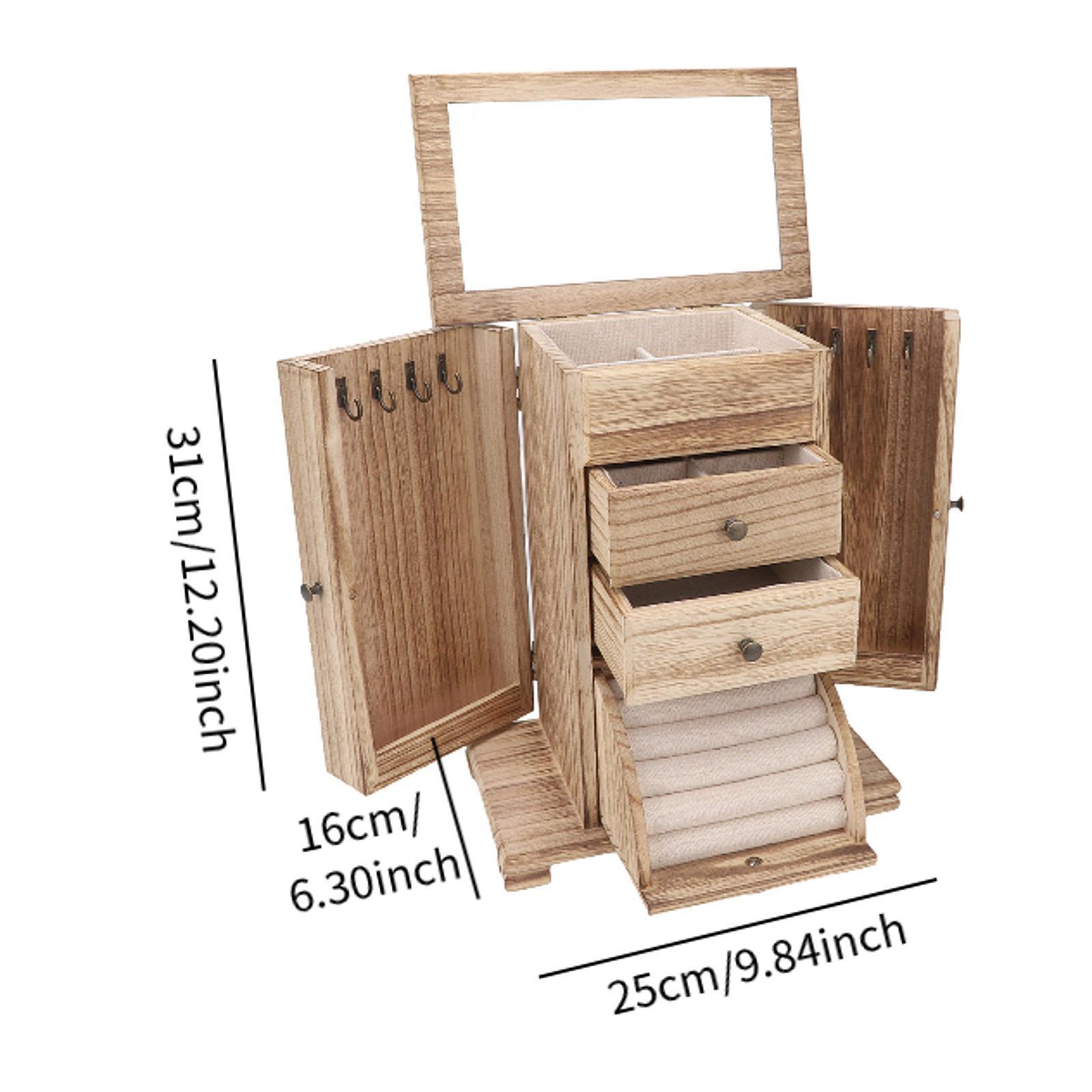 Store Home | Sporting Goods | Bicycle Components & Parts | Water Sports | Club | Others Jewelry Box Jewelry Storage Box Multifunctional with Drawers Jewelry Display Description: 【Large Capacity Design】: This jewelry box features multiple layers of drawers and divided layouts, providing ample storage space. It can easily accommodate various types of jewelry such as rings, earrings, bracelets, necklaces, etc. 【Quality Solid Wood Material】: Made from premium solid wood that is sturdy. The wood grain texture presents an elegant vintage design. 【Vintage Design Appearance】: The delicate texture design combined with classic makes this jewelry storage box not only practical but also decorative, a great addition to your home decor. 【Soft Lining Protection】: The lining is made from quality cloth that is soft to the touch, effectively protecting your jewelry from scratches and wear. 【Elegant Gift】This great Jewelry Storage Cases Makes an ideal gift for birthdays or other special occasions. Surprise your girlfriend, wife, or any love 1 with this elegant storage solution for their cherished pieces. Specification: Material: Wood Size (Excluding Mirror): 25cmx16cmx31cm/9.84inchx6.30inchx12.20inch Package Includes: 1 Jewelry Box Note: Please allow slightly errors due to manual measurement and different monitors. Payment Shipping Returns If you are bidding or ordering more than one item, the items will be combined into one order automatically thus you can pay altogether. If you want not to combine, please buy one and immediately pay one separately. Please pay what you win in 7 days. Unpaid Dispute will be automatically open if payment is not received after 7 days. If you pay the bill after received unpaid dispute, please email us to close the unpaid dispute. Because the unpaid dispute will not be closed automatically, and we may ignore it. The buyer is responsible for any applicable import duties and local taxes. Please verify with your customs before making your purchase. Please verify your address during checkout. We are not responsible for any wrong or undeliverable addresses. We are committed to give you the best customer service possible. If for any reason you are unsatisfied with a purchase, please contact us and we'll assist you with a prompt solution. Please let us work on the issues. We'd like to settle any problem in a friendly manner. Please do not open a case on eBay or PayPal, or leave any negative or neutral feedbacks directly! We always reply to messages within 2 business days (off-duty at weekend). Due to the difference of time zone between Hong Kong and your location, sometimes the answer will be delayed. If you do not get a response from us after 2 business days, please check your junk or spam mailbox. Unsatisfied product can be returned within 30 days from the delivery date . We can offer a full refund or exchange, but we are not responsible for return shipping cost. Please contact us to get a RMA number before sending out your return. Feedback: 1. Since your feedback is very important to our business's development, we sincerely invite you to leave positive feedback with four 5-Detailed Selling Rating (DSR) to us basing on your satisfaction with our commodity and service. It's just take you 1 minute. 2. Unfortunately, If you are planning to give us a neutral/negative feedback because of your bad buying experience with us, please contact us at any time so as to clear up your discontent and resolve the problem. Featured Products People always bought together with