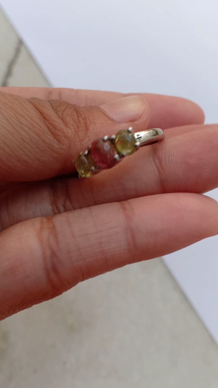 This is a handmade 925 sterling silver ring with three oval shaped natural tourmaline gemstones. The ring is designed in a prong setting with a full finger, cocktail, and eternity style. The gemstone clarity grade is eye clean and the cut grade is excellent. The ring is nickel-free and has a band width of 1.5mm. It is available in all sizes and is resizable. The ring is perfect for engagement, mother's day, Christmas, anniversary, birthday, and Valentine's day. It is also available in a vintage style from the Victorian era. The ring is certified by AGI, AGL, and has a natural certification. It is made in India and is available for wholesale.