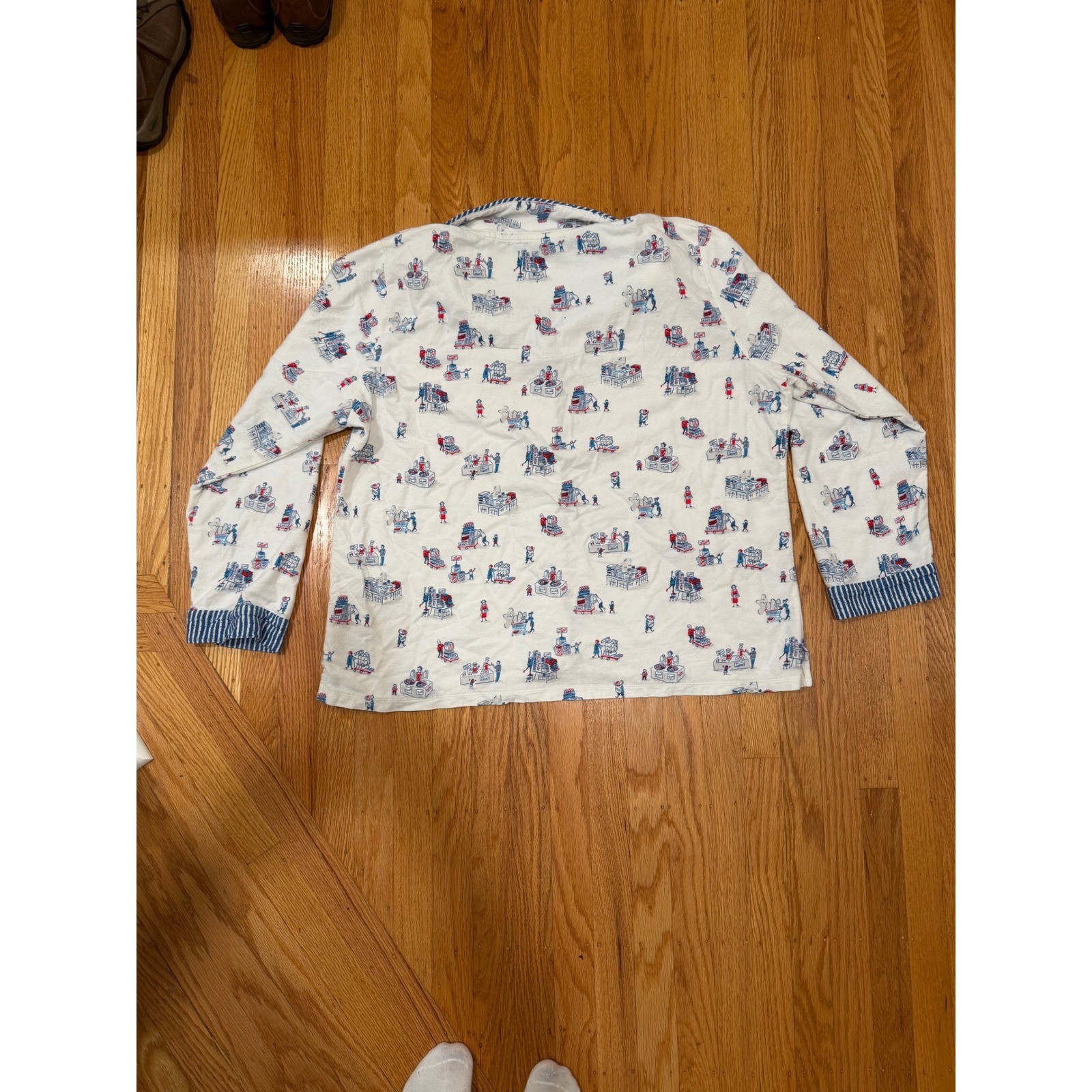 Escape into comfort with this delightful Munki Munki pajama set, a whimsical ensemble that promises restful nights and cozy mornings. This set features a button-down, long-sleeved top and matching pants adorned with a charming novelty print. The playful design adds a touch of lightheartedness to your bedtime routine, while the classic tailoring ensures a relaxed and flattering fit. Perfect for weekend lounging, casual sleepovers, or adding a dose of fun to your everyday sleepwear. Measurements: • Pants Inseam: 27 inches Type: Pajama Set Department: Women Theme: Christmas, School Pattern: Graphic Print Material: Cotton Fabric Type: Knit Sleeve Length: Long Sleeve Season: Winter, Fall, Spring Closure: Button Accents: Button Keywords: Munki Munki, Pajama Set, Womens, XXL, Novelty Print, Loungewear, Sleepwear, Pajamas, Matching Set, Long Sleeve, Button Down, Comfortable, Cozy, White, Blue