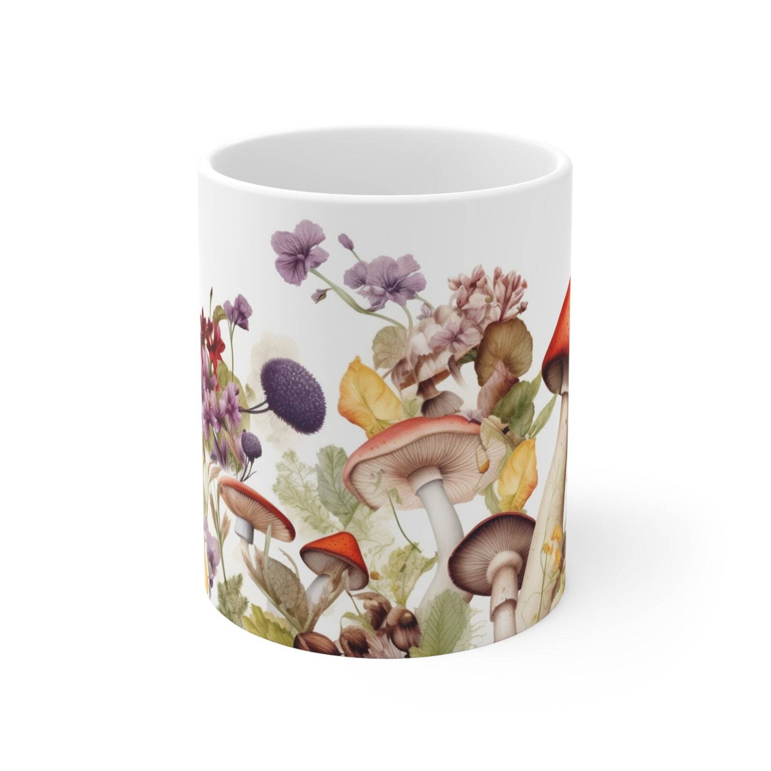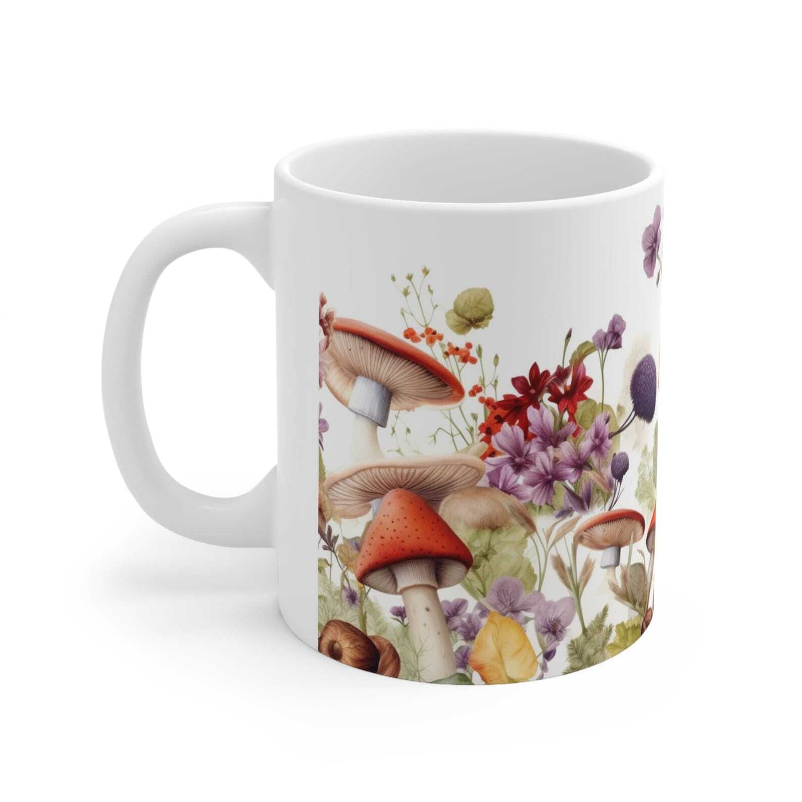 Mushrooms And Wild Flowers Ceramic Mug 11oz Product Details.. This high quality 11oz. ceramic white mug has a premium hard coat that provides crisp and vibrant color reproduction sure to last for years. Perfect for all hot & cold beverages. The highest quality printing possible is used. It will never fade no matter how many times you wash it. Material: 100% Ceramic. Print both sides. Dishwasher and Microwave Safe. High Gloss + Premium White Finish. Printed in the U.S.A. Personalized & Custom. We support personalized and custom mug to add custom, when placing an order, you can add notes to the "order note" in shipping address section. Also you can contact us directly via message. Shipping Info. Ready to ship in 1 to 2 business days, All products are made-to-order and proudly printed in the United States. Shipped by USPS and DHL, You will receive your order in 5-7 days. Replace & Refund. All products are defective during shipping broken, chipped will be replaced free of charge. You are not satisfied with the product, we will refund 100% money to you. If any other issues arise, please do not hesitate to message, we would be more than happy to assist you.