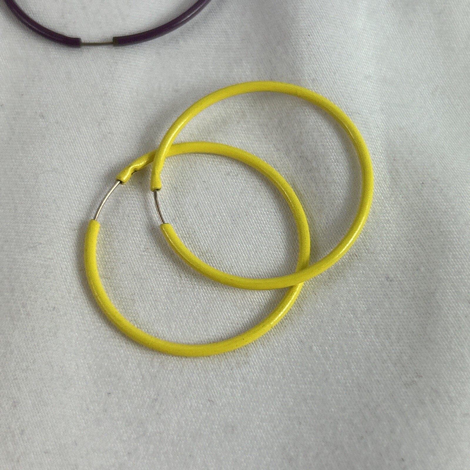 Enhance your jewelry collection with these stunning hoop earrings featuring a set of four pairs, each with a unique design. The earrings come in multicolor shades of mustard, green, yellow, and purple, and are perfect for any occasion. These asymmetrical hoop earrings have a continuous hoop closure, suitable for the lobe area, and measure 1.25 inches in length. The earrings are crafted with intricate shapes and a stylish theme that is sure to catch the eye of any fashion enthusiast. Made from high-quality materials, these earrings will make a great addition to your fashion jewelry collection. Add these wonderful earrings to your cart today and elevate your style with ease! See photos for any wear marks.