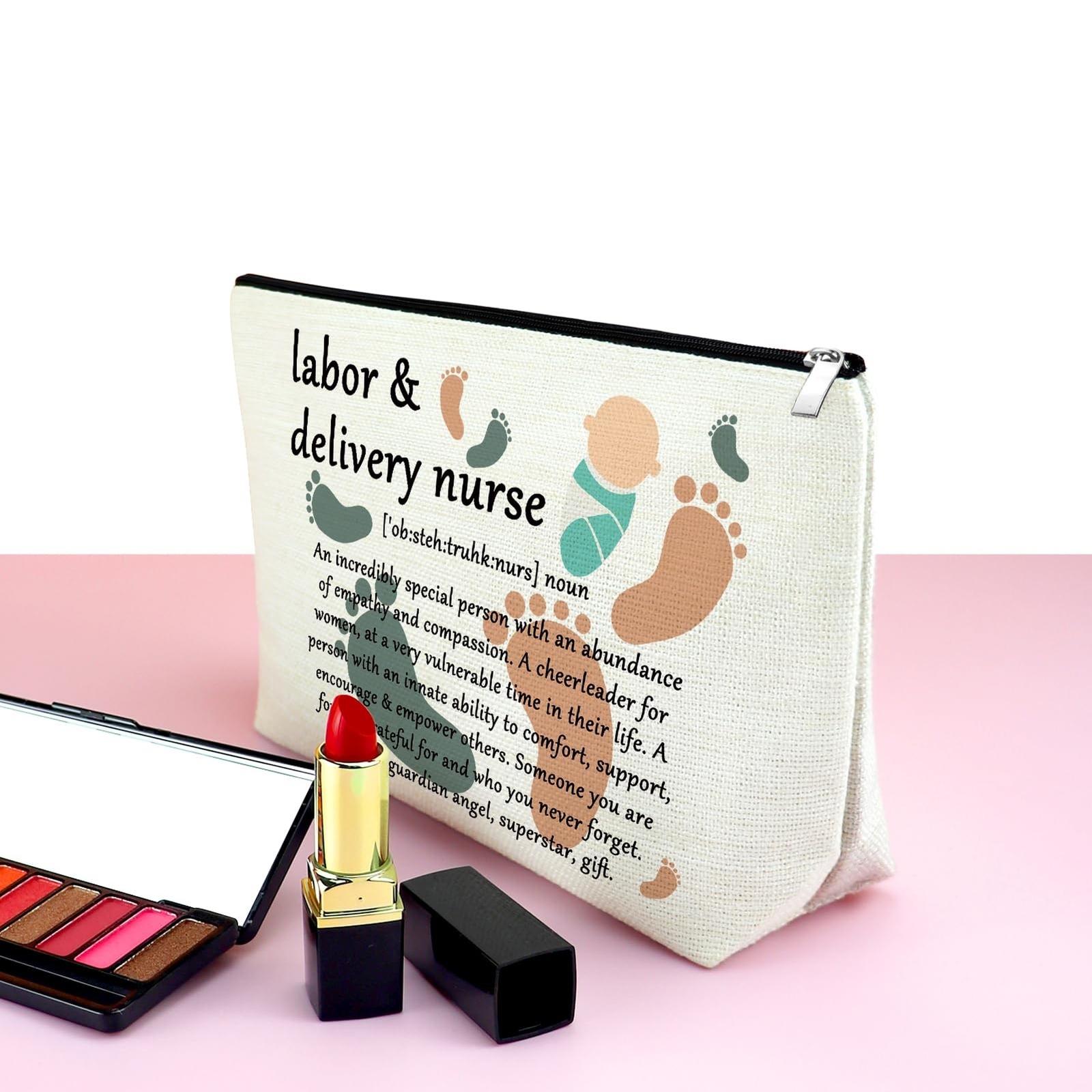 Mxrymvu L&D Nurse Makeup Bag Labor and Delivery Nurse Thank You Gifts Cosmetic Bag Nurses Week Gifts Ideas L&D Nurse Appreciation Gifts Superhero Nurse Gifts Inspirational Gifts for Nurse Product Details Product Dimensions: 9.84 x 6.69 x 0.39 inches Item Weight: 2.82 ounces Department: Women Manufacturer: Mxrymvu Country of Origin: China L&D Nurse Makeup Bag:The makeup bag is printed with "An incredibly special person with an abundance of empathy and compassion. She is a cheerleader for women at the most vulnerable moments in their lives. She has the innate ability to comfort, support, encourage and empower others. Someone for whom you are eternally grateful and will never forget. See also; Guardian Angel, Superstar, Gift." L&D Nurse Thank You Gifts:The Labor and Delivery Nurse sign is An impressive and heartwarming gift, the perfect Labor and Delivery nurse thank you gift from woman in childbirth, student, sister, coworker, A thoughtful gift to show your appreciation for them. Superhero Nurse Gifts:Labor and Delivery gift for retirement, farewell, leaving, new job, nurse's week day, Christmas, and many other occasions. Make this a meaningful gift for nurse. Makeup Bag Material: The makeup bag made of cotton and linen material, soft and durable. Double-sided printed and coating zipper pouch, the zipper is smooth and easy to use, durable and portable. Easy to clean, do not worry about cosmetic residue stains. Grocery storage bag, cosmetic bag, purse bag, tote makeup bag, case bag for daily use. Multi-Uses Cosmetic Bags: 10 inches (25 cm)* 6.7 inches (17 cm). Medium size, grocery storage bag, cosmetic bag, purse bag, tote makeup bag, case bag for daily use. The makeup case have large space to storage your makeups and cosmetic accessories, like lipstick, makeup brushes, eye shadow, makeup palettes etc. THIS ITEM IS NOT INTENDED FOR USE BY CHILDREN 12 AND UNDER.