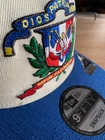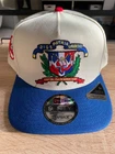 *** This is not a stretch snap, extra sticker was placed on to the hat at the factory erroneously.*** 🇩🇴 Soy Dominicano 🇩🇴 🇩🇴 EL ESCUDO DE LA REPÚBLICA DOMINICANA 🇩🇴 Style : 4789437362NY Color : Off White / Seashore Slate / Radiant Red Material : Polyester Silhouette : 9FIFTY A-FRAME SNAPBACK Features : Dominican Republic Crest Front Logo Lucky Green Undervisor Black Sweatband Tonal New Era Flag Stylized Yankees Logo Side Patch No Rear Logo Radiant Red Bartacks Iridescent and Metallic Embroidery Inspired and Made for Juan Soto Officially Licensed Country of Origin: Laos 🇱🇦