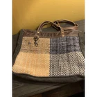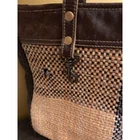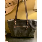 *Small snag on front with fabric. See photo. Otherwise great condition! * This Myra Bag shoulder bag is the perfect accessory for any occasion. With a unique canvas, leather, and cotton exterior, this medium-sized bag features a square shape with a zip closure and double handles for easy carrying. The bag is lined with multicolor fabric and has inner and outer pockets for added convenience. The bag is designed with a bohemian and colorful theme, perfect for teachers, cowboys, and nature enthusiasts. It also has a preppy and western style, making it suitable for workwear, business meetings, weddings, parties, and more. The bag comes with a key and has a height of 11 inches, width of 14 inches, and depth of 3 inches.