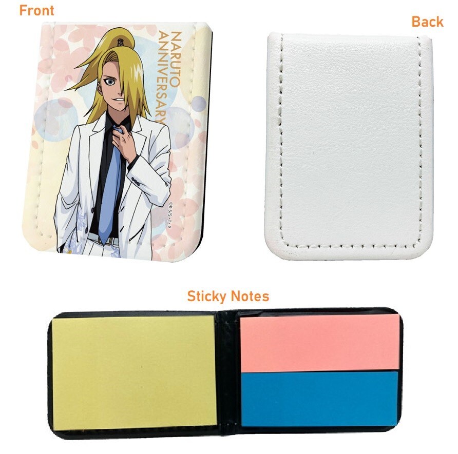 Item: A3 Leather Sticky Notes Book "NARUTO Shippuden" 15 - Deidara Flower ver. (New Illustration) Character: Deidara (デイダラ) Series: Naruto Shippuden (ナルト疾風伝) Original Name: レザーフセンブック「NARUTO -ナルト- 疾風伝」15/デイダラ 花ver. (描き下ろし) Number of Sheets: 75 (3 Colors x 25 Sheets Each Color) Size: Approx. 57 x 77 x 11 mm Material: PU Leather, Fine Paper Details: From the hit anime "NARUTO Shippuden" comes a new series of Leather Sticky Notes Book featuring newly drawn illustrations - your favorite characters in flower theme formal attires. The sticky notes are in 3 colors and 2 sizes contained in a compact cover. Compact and lightweight, it's convenient and easy to carry around in your pocket or pen case. Manufacture: A3 Condition: 100% Authentic Brand New Japanese imported item in original sealed bag/packaging. Payment: Payment must be made within 5 days after winning/listing ended. Shipping & Handling: Ships within 1-2 business days after receiving cleared payment. Policy: Returns NOT Accepted After sealed bag/item packaging has been opened and item used. Seller not responsible for any taxes or customs duties occurred at buyer's end. **Some images may be test production shot prepared by their makers, and differ from finished products. **