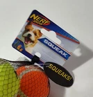 Four mini tennis balls that are different in color, squeaks when chewed, bouncy, new in bag. By HASBRO,, NERF DOG !!