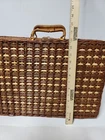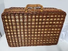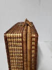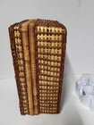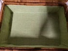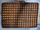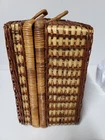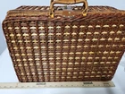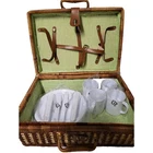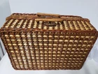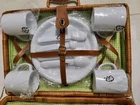 NEW Bamboo Rattan Wicker Picnic Basket With 4 Place Setting Dishes, Cups Cutlery. Reinforced Handles With Leather & Metal Toggle Closure. Basket Lined With clear laminate & cushioned fabric. 10" diameter plates, Cups are 4" Ht & Length, all Heavy plastic. Basket is 15" ht, 18" Length, 8" Width, 5# 5 oz wt. I will ship by lowest price service including USPS, UPS, or FedEx.