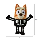 NEW Bluey & Bingo Skeleton Glow In The Dark Plush Costume Stuffed Animal Set NWT You get 1 Bluey & 1 Bingo Nighttime is no time to fear when you have an adorable, glow-in-the-dark Bluey & Bingo® skeleton plush by your side! Bluey & Bingo are dressed up for Halloween in skeleton suits that gently glow when the lights go off. With soft fabric construction and big, outstretched arms, Bluey & Bingo are the perfect companion for bedtime hugs. Let our Bluey & Bingo glow-in-the dark skeleton plush light your way this Halloween and every night! Bluey & Bingo® wear a glow-in-the-dark skeleton costume for Halloween Officially licensed from the animated TV series Bluey® Skeleton bones gently glow when the lights are off Polyester fabric construction with polyester stuffing 7.5 inches tall, 4.5 inches wide Bingo® wears a glow-in-the-dark skeleton costume for Halloween Officially licensed from the animated TV series Bluey® Skeleton bones gently glow when the lights are off Polyester fabric construction with polyester stuffing 7.5 inches tall, 4.5 inches wide To upcycle, I reuse shipping material as often as possible. Buy more from my store and save on shipping. Great Gift Idea. Stocking Stuffer