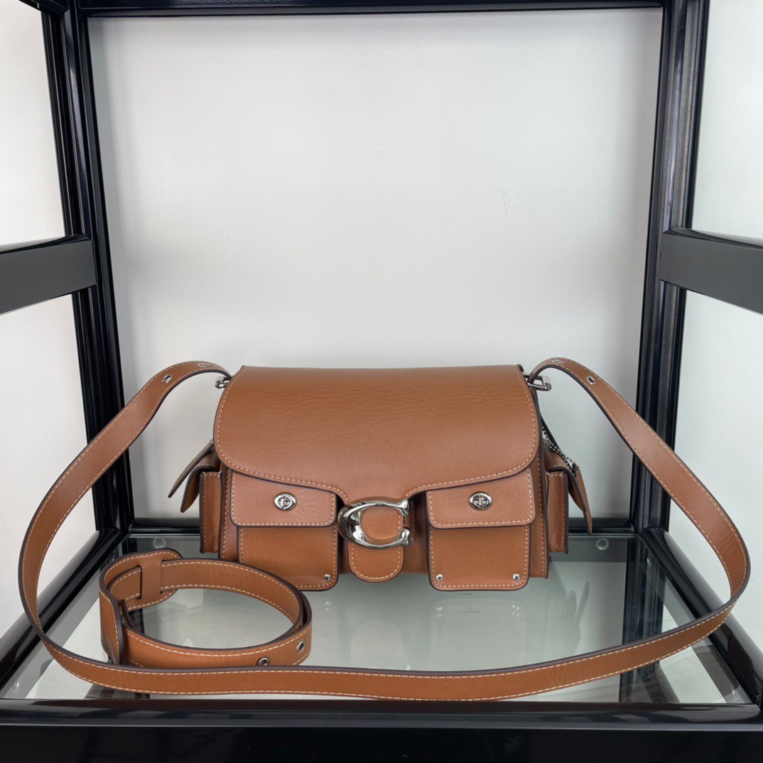 The NEW COACH Cargo soft tabby Fashion Women's Satchel Bag in Brown is a stylish and versatile handbag designed for women. Made from a combination of leather and PVC, this shoulder bag features a spacious interior perfect for carrying essentials while on the go. The signature Coach brand adds a touch of luxury to this fashionable accessory, making it a must-have for any chic woman's wardrobe. The brown color adds a classic and timeless touch to the overall look of the bag. Size : 26cm x 15cm x 13cm