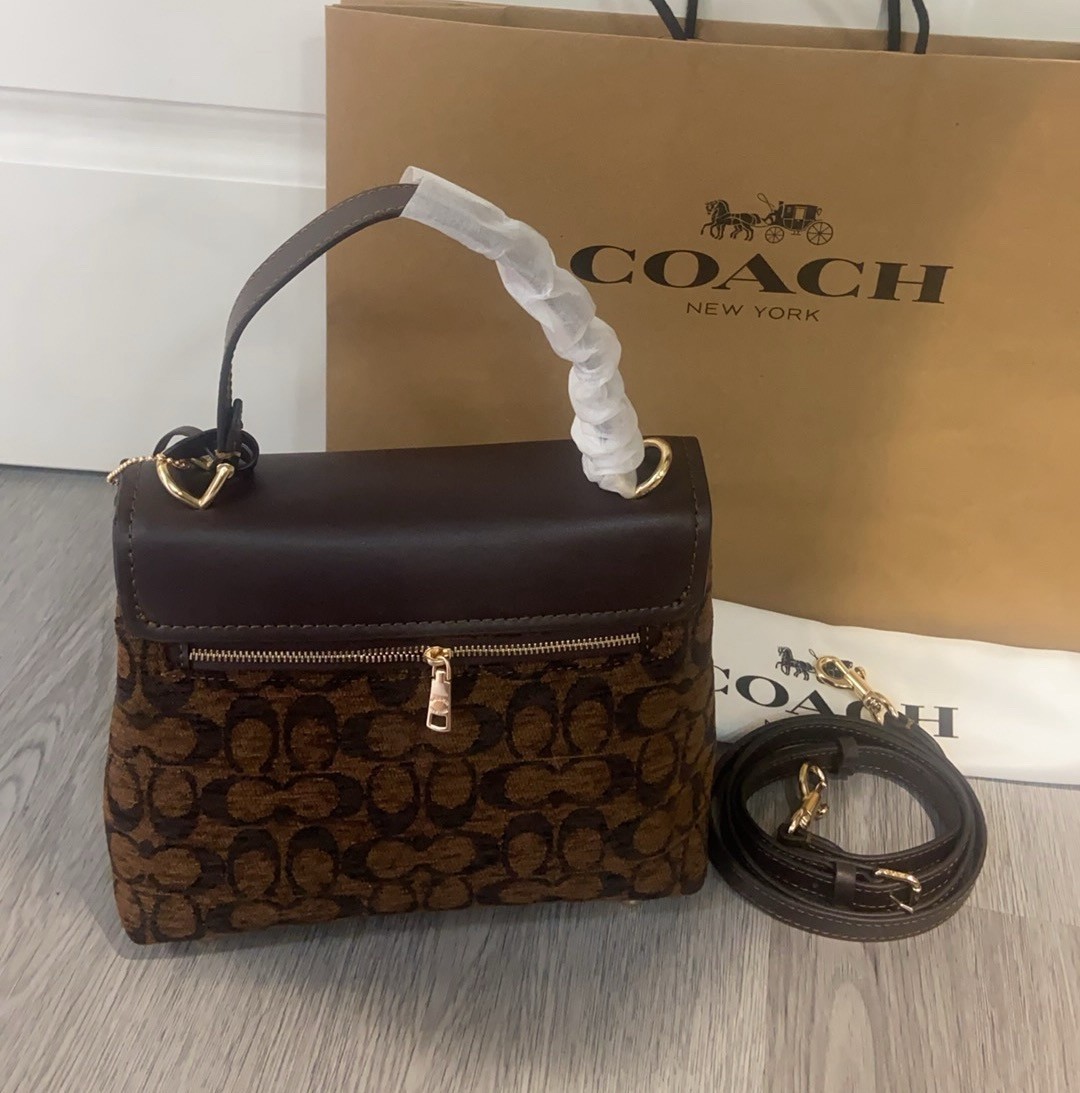 The NEW COACH EMORY CDB06 Fashion Women's Satchel Bag in Brown is a stylish handbag designed for women. Made by Coach, this shoulder bag features a chenille material construction in a rich brown color. This one-size bag is perfect for everyday use and adds a touch of sophistication to any outfit. Ideal for carrying essentials, this satchel is a versatile accessory for any fashion-forward woman. Size : 26cm