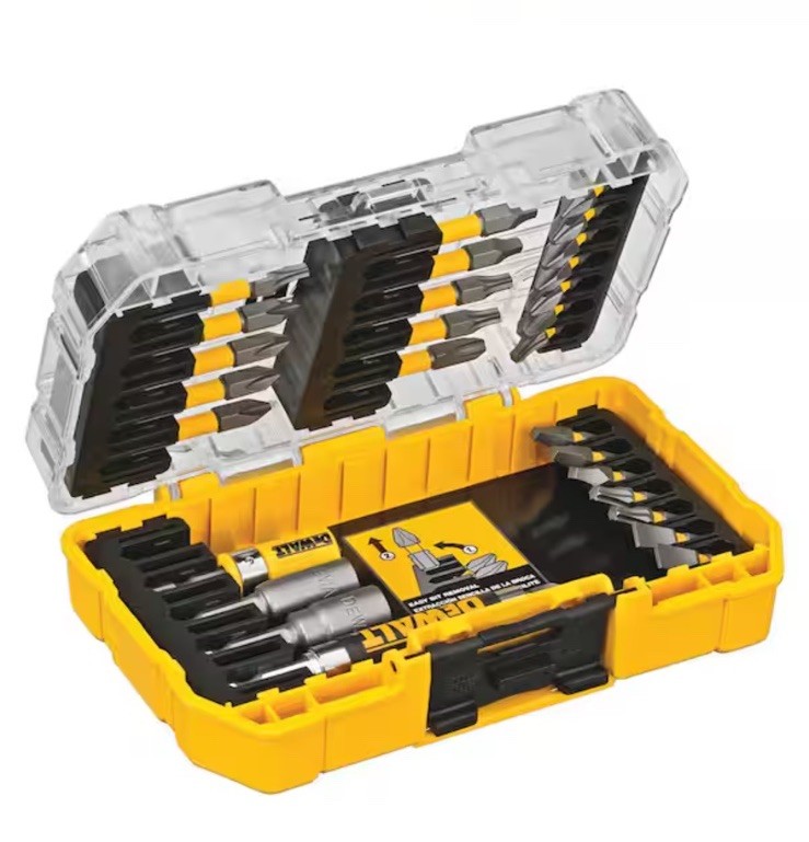 NEW DEWALT DWA2SLS30 30-Piece MAXFIT Screw Lock Bit Set w/ Sleeve About This Product Securely fasten assorted sizes of flathead screws, Phillips screws, Torx screws and square bits with this 30-piece MaxFit Screw Lock Set from DEWALT. It includes a magnetic screw lock sleeve so you won't drop any fasteners and a bit tip holder provides extended reach when your power tools need to operate in cramped spaces. The bit tips are precision-machined to snugly fit screw recesses, resulting in feuwer stripped screws. * Includes: (15) 1 in. bits, (11) 2 in. bits, (2) nut drivers, (1) magnetic screw lock sleeve and (1) bit tip holder * Magnetic screw lock system holder and sleeve feature a floating ring magnet for fastener retention, which minimizes drops and reduces wobbling * Precision-machined bit tips allow snug fit inside screw head recesses for controlled fastening * Hexagonal shank offers strong grasp in drill chuck * Compatible with most impact drivers and drill/drivers Product Information Internet # 204786203o Model # DWA2SLS30 Store SKU # 1000039785