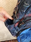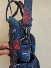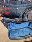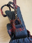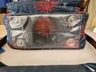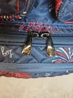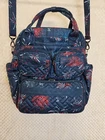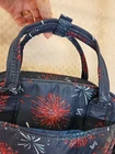 The NEW Lug Mini Puddle Jumper ToteBag is a stylish and functional shoulder bag that is perfect for travel, casual outings, and business meetings. The bag features a rectangular shape, making it convenient to carry around. The exterior is in a navy color with a quilted finish and colorful fireworks pattern, while the bag has a multicolor handle/strap, zip and magnetic closure, and gunmetal hardware accents. It also includes a detachable strap, a key holder, and handle keeper as accessories. The ToteBag is packable, making it a versatile and practical choice for busy women on the go....B2111