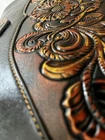 This NEW Rare Floral Embossed Vegan Luxury Leather Shoulder Bag Handbag is a stylish and elegant choice for women. The medium-sized satchel/top handle bag features a beautiful floral pattern on the black exterior, made of the highest quality vegan leather with a lovely shoulder strap in brown. The lining adds a touch of sophistication to the overall design. Perfect for adding a pop of vintage sophistication and a luxurious touch to any outfit.