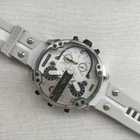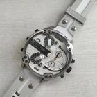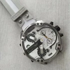 the watch comes with its original box Product Details Featuring a massive 57mm ion plated sleek stainless steel case, this update to Diesels Mr. Daddy 2.0 collection delivers aggressive design with a stylish touch. Four time zones and a fresh case update, Mr. Daddy 2.0 delivers cutting-edge design elements so far ahead of the curve, theres no point in trying to catch up. Inspired by tactical gear and gauge read-outs, this groundbreaking style is fully equipped with aggressive lug shapes, unique hardware and a highly complex dial with more dimensions and graphics than ever before. TIME 1: Three-hand analogue display with quartz movement, three sub-dials and date display window. TIME 2/3: Three-hand analogue display with quartz movement and hour markers with minute track. TIME 4: Two-hand analogue display with quartz movement and hour markers. Chronograph functionality. Mineral Crystal glass for scratch resistance, "3 BAR" splash resistant (not waterproof). Case Diameter: 57 X 66 MM Case Thickness: 14mm Band Width: 28mm Movement Type: Quartz/Multi Water Resistant Depth: 3ATM / 30m If any questions,please message us firstly, we will answer you ASAP.