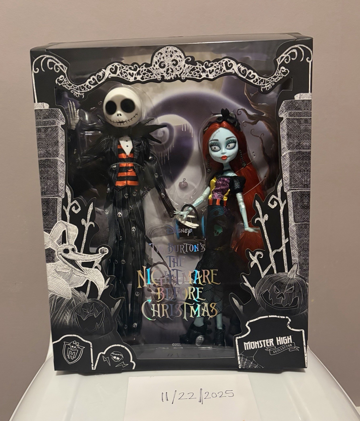 BRAND NEW IN BOX Jack Skellington and Sally from Disney Tim Burton’s The Nightmare Before Christmas. This hauntingly lovable duo features premium fabrics with signature iconic details and special Easter eggs that make them oh-so-undead. Disney Tim Burton's The Nightmare Before Christmas Jack Skellington and Sally Monster High® Skullector™ Dolls Jack is 12 inches tall and Sally is 10.5 inches tall Jack is wearing his iconic black pinstriped tuxedo ensemble, complete with a bat bow tie Sally features her iconic stitch marks, long red hair, and her iconic patchwork dress reimagined into couture Dolls cannot stand alone. Doll stands included.