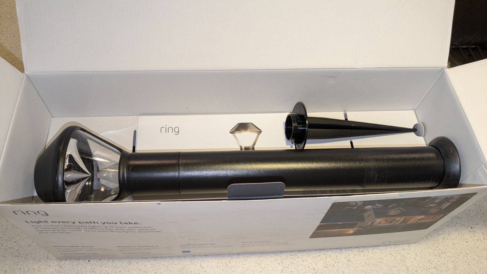 NEW Open Box-Black Ring Smart Lighting Alexa-Compatible Weather-Resistant Motion-Activated Pathlight, made in China. Powered by 4 size "D" 1.5V batteries, not included. Shipment via USPS Ground Advantage. Local pickup is also available.