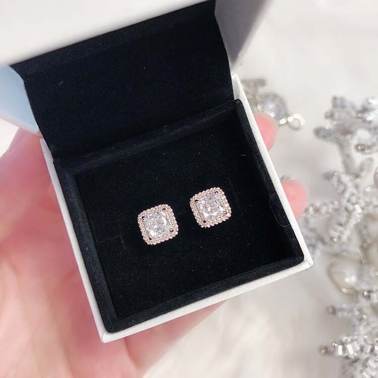 DESCRIPTION: STYLE: Pave square sparkle halo stud earring COLOR: rose gold SIZE: One size CONDITION: brand new in retail condition. DETAILS: Pandora Rose 14k gold plated sterling silver with, hand-finished.