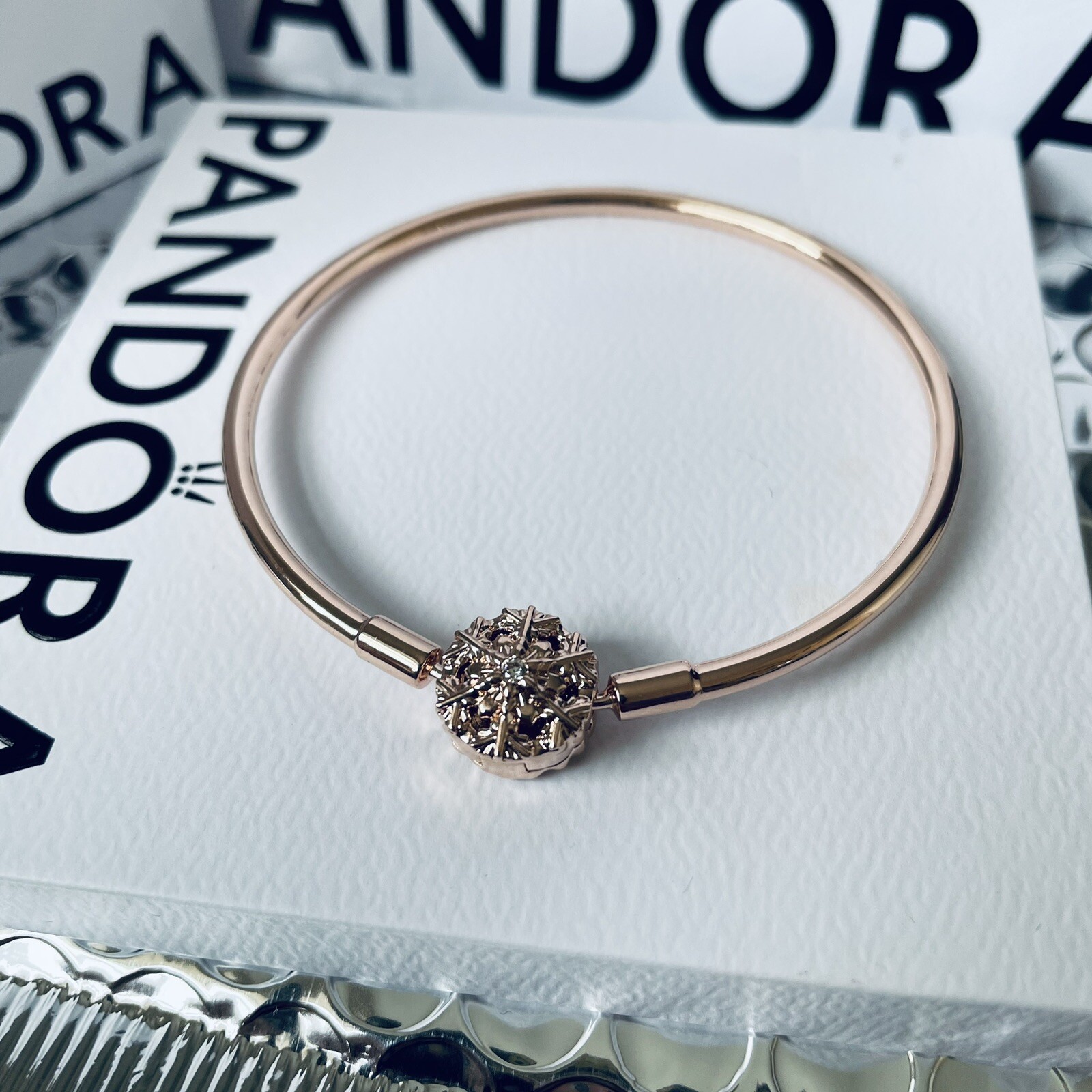 HomeNEW ™Pandora Snowflake Rose Gold Bangle 16-21cm Discontinued S925 gold-plated