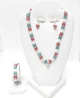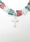 YOU ARE BIDDING ON A NEW RED/WHITE GREEN "CHRISTMAS SILVERTONE CROSS" HANDCRAFTED NECKLACE, BRACELET & EARRINGS 4 PIECE LITTLE GIRLS JEWELRY SET IN ACRYLIC RED/GREEN/WHITE BUTTERFLY BEADS AND SMALLER CEYLON WHITE GLASS BEADS WITH A BEAUTIFUL MATCHING CHRISTMAS SILVERTONE CROSS CHARM IN THE CENTER OF THE NECKLACE. THIS SET IS SO CUTE AND ANY LITTLE GIRL WILL LOVE IT---STRUNG ON 1 MM STRETCH MAGIC CORD AND DOUBLE KNOTTED AND GLUED FOR EXTRA STRENGTH. NECKLACE 15 1/2 INCHES BRACELET 5 3/4 INCHES PIERCED EARRINGS 1/3 INCH DROP I DO COMBINE SHIPPING--ONLY $.15 SHIPPING FOR EACH ADDITIONAL CHILD'S JEWELRY SET PURCHASED. ENJOY FREE SHIPPING ON ALL ORDERS OF $65.00 OR MORE EXCLUDING SHIPPING & HANDLING.