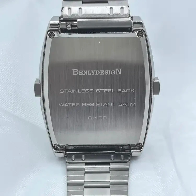 Watch model - G100 Movement - BENLYDESIGN self-design Electronic digital Movement Case size - 38*46.5MM Case thickness - 13.0MM Case material - Zinc Alloy Case back - Stainless steel Strap size - 13.5-20.5CM Strap width size - 18MM Strap material - Silicone & Stainless Waterproof - 5 ATM/50M Weight - 90G Strap adjustable - YES Battery replaceable - YES Battery model - CR2016 Dynamic Time Display Time has never been so lively. The digital scrolling feature allows the numbers to elegantly move in a rolling motion, with each second delicately displayed like a work of art. Multifunction Movement The electronic digital movement offers precise timekeeping with functions like alarm, stopwatch, and perpetual calendar. It also includes a snooze function and solar-assisted power for extended lifespan. Stainless Steel Strap Crafted from stainless steel, this strap ensures a soft, comfortable fit that moves with you. Its smooth design adapts to your wrist, offering all-day wearability. Experience effortless comfort without compromising on style. The Solar-assisted Function Absorbs light for 8 hours, providing all-day use, significantly extending its lifespan.When enabled, it pauses battery consumption, extending the movement's lifespan. This feature enhances the watch's durability and sustainability. Quick-Release Strap There are no tools required to remove the spring bars that attach the silicone strap to the case. Refresh your look in seconds with strap options.Benlydesign's unique locking function ensures the free end is securely fastened. Water Resistant to 50 Meters This watch is suitable for light swimming. It is not suitable for snorkelling, or poolside diving. To maintain water resistance, do not press any buttons while underwater. Fits Wrist Circumferences 135 - 205mm (5.3 - 8.0 in) This watch fits wrist circumferences between 135 - 205mm (5.3 - 8.0 in). We suggest using a garment measuring tape to ensure an accurate fit to your wrist. About us Superior Design & Craftmanship BENLYDESIGN as an international brand focused on original design watches, dedicated to sharing outstanding fashion items with the world through innovative design. Upholding the concept of "Design Equality," BENLYDESIGN strives to make the charm of art-like design accessible to everyone through creative innovation and the optimization of global industrial resources. As a revolutionary brand, BENLYDESIGN aims to revitalize the industry by designing and creating meaningful timepieces. Since its inception, BENLYDESIGN has applied for over 300 original design patents, which are valid in various regions including the United States, the United Kingdom, Japan, Germany, as well as in China, Korea, Vietnam, Singapore, Malaysia, Indonesia, the UAE, and Saudi Arabia.