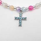 YOU ARE BIDDING ON A NEW HANDCRAFTED 4 PIECE LITTLE GIRLS NECKLACE, BRACELET AND EARRINGS JEWELRY SET IN ACRYLIC 6 MM MULTI-COLOR AB BEADS AND SMALLER CLEAR GLASS BEADS WITH A TURQUOISE RHINESTONE CROSS IN THE MIDDLE OF THE NECKLACE. THIS SET IS SO CUTE AND ANY LITTLE GIRL WILL LOVE IT---STRUNG ON 1 MM STRETCH MAGIC CORD AND DOUBLE KNOTTED AND GLUED FOR EXTRA STRENGTH. NECKLACE 16 1/2 INCHES BRACELET 6 1/2 INCHES PIERCED EARRINGS 1/3 INCH DROP I DO COMBINE SHIPPING--ONLY $.15 SHIPPING FOR EACH ADDITIONAL CHILD'S JEWELRY SET PURCHASED. ENJOY FREE SHIPPING ON ALL ORDERS OF $65.00 OR MORE EXCLUDING SHIPPING & HANDLING.