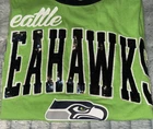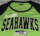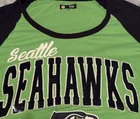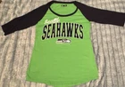 NFL Seattle Seahawks sequin logo raglan jersey t-shirt womens size small, 3/4 sleeve, gorgeous green & navy blue, glitter sequin logo front, like new excellent gentle used condition.