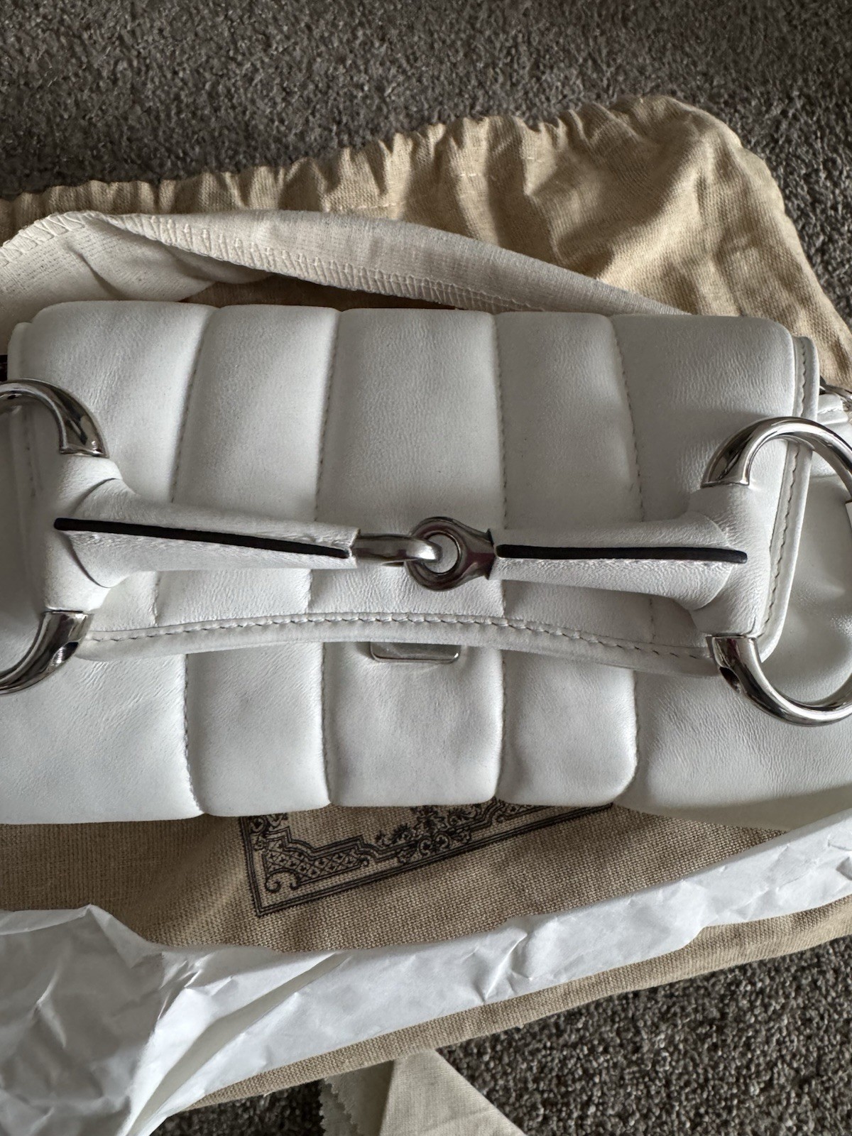Brand new GUCCI White Quilted Lambskin Leather Horsebit Chain Shoulder Bag Never opened the package after purchase. Just opened to take some photos. Super cute. Final sale, no return. Item goes to Ebay authentication first. Retail price is over $4,000. Dimension: 11x 5.5 in