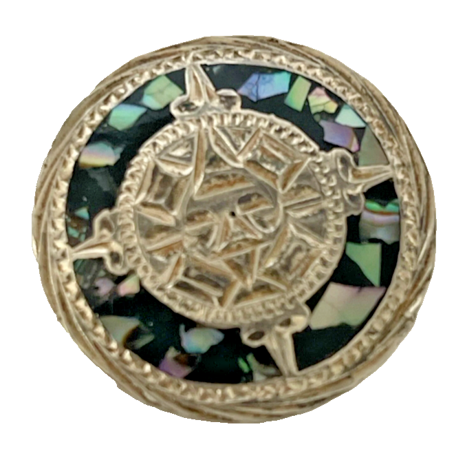 This unique vintage pendant is a must-have for any jewelry collection. The markings on the sterling silver metal indicate that it was crafted in Mexico and features a beautiful abalone shell inlay. The pendant is signed and has a tribal god design that is sure to catch the eye of anyone who sees it. The pendant is perfect for any occasion, whether it's a special event like a wedding or anniversary, or an everyday accessory. The silver color and unisex design make it versatile enough to wear with any outfit. Plus, it's nickel-free, so it's safe for those with sensitive skin. Add this handcrafted Sterling Silver Pendant to your collection today! Please note I am a veteran seller of 17 years under (TheChic_SheShed) I opened this account to move my jewelry to, as I closed my etsy shop. So please do not mind the little to no feedback. Check out my other account.