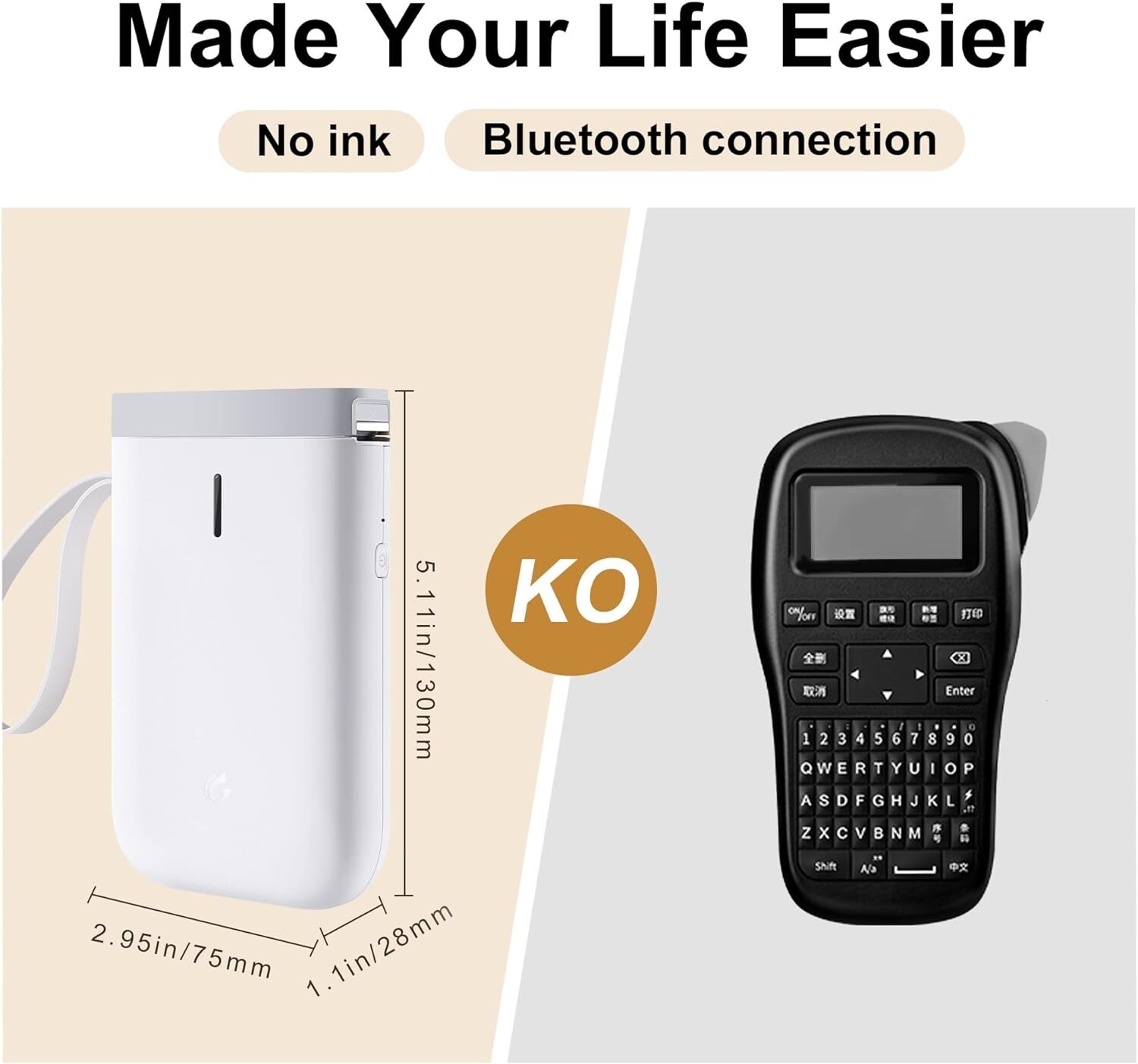 NIIMBOT D11 Label Maker Machine, D11 Label Printer Portable Wireless Mini Label Makers Multiple Templates Available for Home Office Organization USB Rechargeable (White) About this item ❤【Portable & Lightweight Label Makers】Half weight and size of the traditional label maker. About 200g in weight and almost same size as the cell phone. This mini thermal label printer is easily for making sticker labels. ❤【Connection Via Cell Phone】Support Wireless BT 4.0 connection, compatible with Android and iOS devices. The BT connection make the label maker printer easier to use. Please follow the user manual to download relative APP, then you can print when they connect successfully. ❤【Built-in Battery Mini Label Printer】The barcode Label printer is with a built-in 1200mAh large capacity rechargeable lithium battery,it will work perfectly continuous up to 4 hours. Low noise, no ink or cartridge needed, lower operation cost than the normal printers. ❤【Design Your Own Labels】The label maker machine support multi-national languages, horizontal version, vertical version, 1D/2D barcode, QR code, table printing, etc. There're a lot of materials in the APP bank, enrich your label creation. You can heve your own sticker label design. ❤【Widely Applicable for Home Office Business】This wireless handheld label maker is made of high quality ABS, with guaranteed quality. It's your ideal gift choice. It can be used widely in daily life. For supermarket, stores, clothing labels, jewellery, small business owners, office & home organization.
