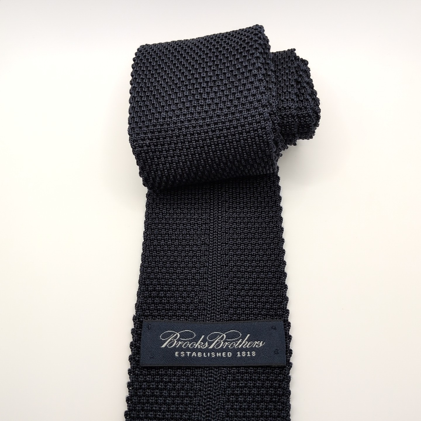 The product is a brand new without tag Brooks Brothers knit tie in navy blue. This accessory is designed for men and adds a touch of sophistication to any formal or professional outfit. The tie offers a classic and stylish look, perfect for a polished and put-together appearance. 58" length 2.75" width