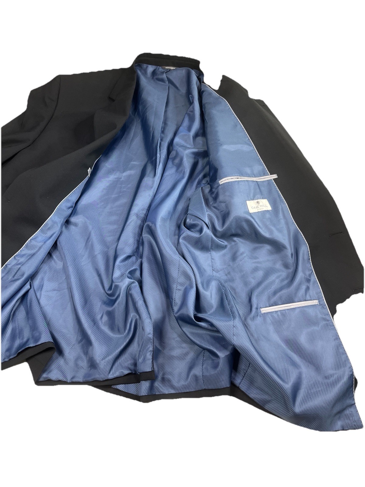 Oak Hill Suit Set 52L NWOT Big & Tall Men's Black 2-Button Wool Blend Blazer Trousers This is a New Without Tags (NWOT) premium black suit set from Oak Hill. It has never been worn and offers a crisp, retail-fresh appearance at a fraction of the original price. Perfect for tall or big-and-tall sizes needing a sharp, professional look. Product Details • Condition: New Without Tags (NWOT) – Pristine condition, never worn. • Brand: Oak Hill • Size: 52 Long (52L) • Color: Deep Black • Fabric: High-Quality Wool Blend (53% Polyester, 43% Wool, 4% Elastane for comfort stretch). • Features: Two-button blazer closure, elegant blue tonal lining, and classic pleated trousers. • Origin: Made in Mexico Approximate Measurements (Laid Flat) Blazer: • Chest (Pit to Pit): ~28" • Shoulders (Seam to Seam): ~22" • Sleeve (Shoulder to Cuff): ~27" • Length (Base of collar to hem): ~33" Trousers: • Waist: ~22" • Inseam: ~32” Why Buy This Suit? As a NWOT item, you are getting a brand-new garment without the retail price tag. The wool blend fabric provides a professional drape while the elastane ensures it moves with you throughout the day. Shipping • Ships within 1-2 business day(s).
