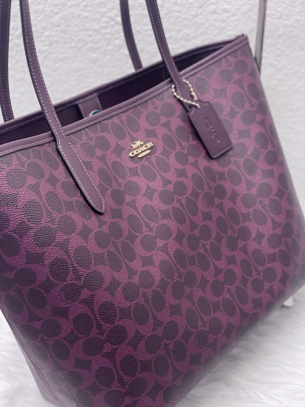 100% Authentic Coach City Tote Shoulder Bag In Signature Canvas CV976 NEW Style No. CV976 Color: black currant Beautiful color! BRAND NEW WITH TAG Bag details: Length: 13.0" Height: 11.5" Width: 6.25" Materials Signature coated canvas Handle Handles with 10" drop Features Inside zip pocket Snap closure Fast shipping!