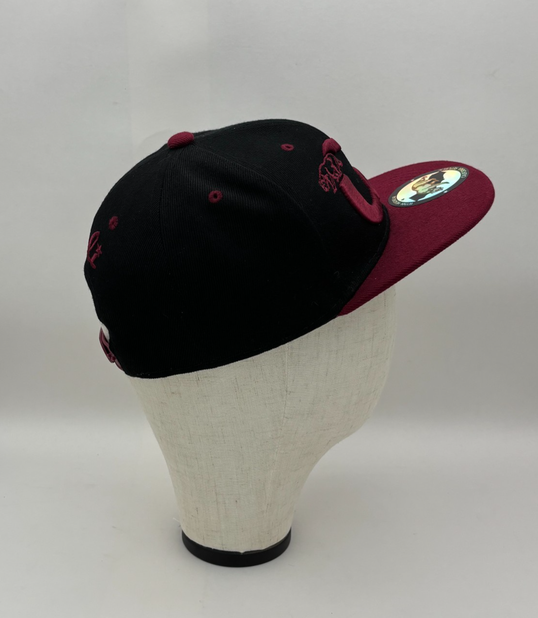 NWT Cali Snapback Hat • Black and burgundy two-tone design • Raised "Cali" embroidery with bear & palm tree graphics • Structured crown and flat brim • Adjustable snapback closure • New with tags • See included photos for measurements 💛 Thanks for supporting our small family business!