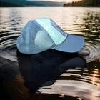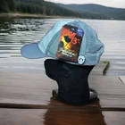 This is a "Camp Crystal Lake" Friday The 13th cap hat featuring the iconic character Jason Vorhees from the horror franchise. The hat is in gray, white, and beige colors with a mesh back and adjustable size. It also includes a pin related to Halloween. The hat is a unique and rare piece for fans of the Friday The 13th series, suitable for casual wear during the summer, fall, or spring seasons.