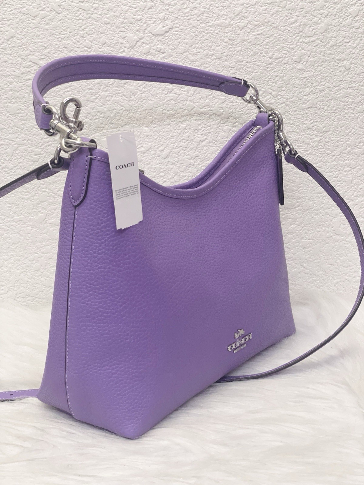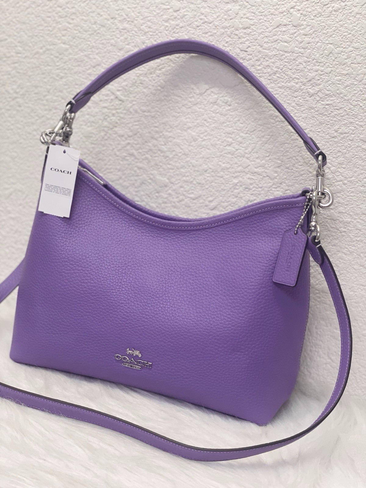 NWT Coach Laurel Shoulder Bag Color: Iris Limited Edition color! 100% Authentic Product Details Style Number CR148 Measurements Length: 12.25" Height: 9.25" Width: 4.25" Materials Soft pebble leather Fabric lining Handle Detachable handle with 11" drop Strap Detachable strap with 22" drop for shoulder or crossbody wear Features Inside zip and snap pockets Zip-top closure Editor's Notes Our Laurel Shoulder Bag is an effortless and versatile style, thanks to a detachable handle and strap. Wear it on your shoulder or as a crossbody to complete any look, while carrying all your daily essentials (like your phone, wallet and keys). Crafted of pebble leather, this designer leather shoulder bag features inside zip and snap pockets to keep your items organized. It’ll be your go-to pebbled leather shoulder bag, no matter where you’re going.