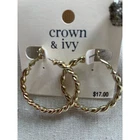 NWT Crown & Ivy Shiny Gold Twisted Braided Hoop Earrings. Love the 90's vibes of these earrings. Perfect for fall and winter. Brand new, with tags. Measurements: Across Hoop Length: 1.5"