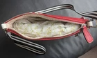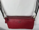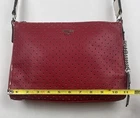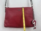 Please refer to the photos for measurements. Offers are welcome, and we are happy to provide additional pictures or measurements upon request. Thank you! Condition: NWT With Flaws. Peeling of the outer shell is present, which is a common issue with this type of material over time. Please review all photos carefully! The inner lining, silver-tone hardware, and interior are in excellent, new condition. Description: Stunning Guess Wonderful Crossbody/Shoulder Bag in a vibrant Red Multi color block pattern (red, black, and white accents). This striking color combination strongly correlates with the aesthetic of the band The White Stripes, making it a fun statement piece. The bag features a cool perforated/textured design on the front, a silver-tone chain-link shoulder strap, and secures with a top zipper closure. The interior is clean, spacious, and includes multiple slip pockets and one zipper pocket. The bag is New With Tags (NWT) and perfect for anyone seeking a piece to capture the Y2K or McBling aesthetic, offering a great functional interior despite the cosmetic flaw on the exterior.