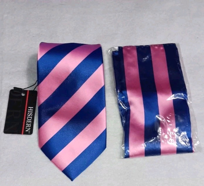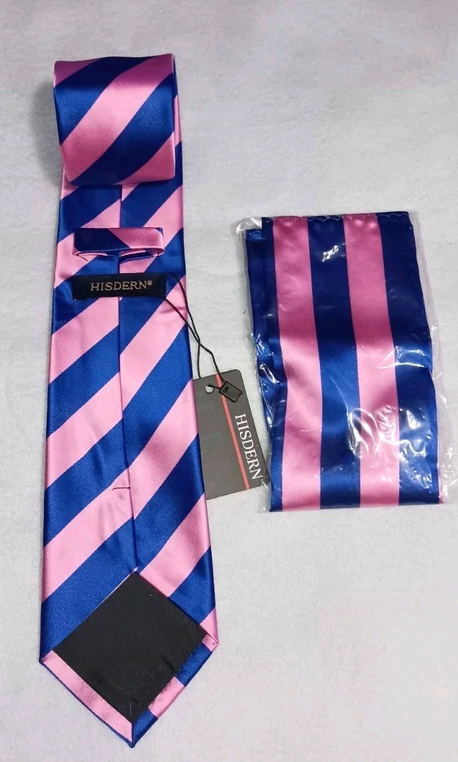 The Hisdern Men's Neck Tie and Pocket Square Bundle Set in Blue and Pink Stripes is a stylish accessory for men. The set includes a striped tie in pink, perfect for adding a pop of color to any outfit. The matching pocket square completes the look, making it a versatile and trendy addition to any man's wardrobe. This bundle set offers a coordinated and fashionable option for those looking to elevate their formal or professional attire.
