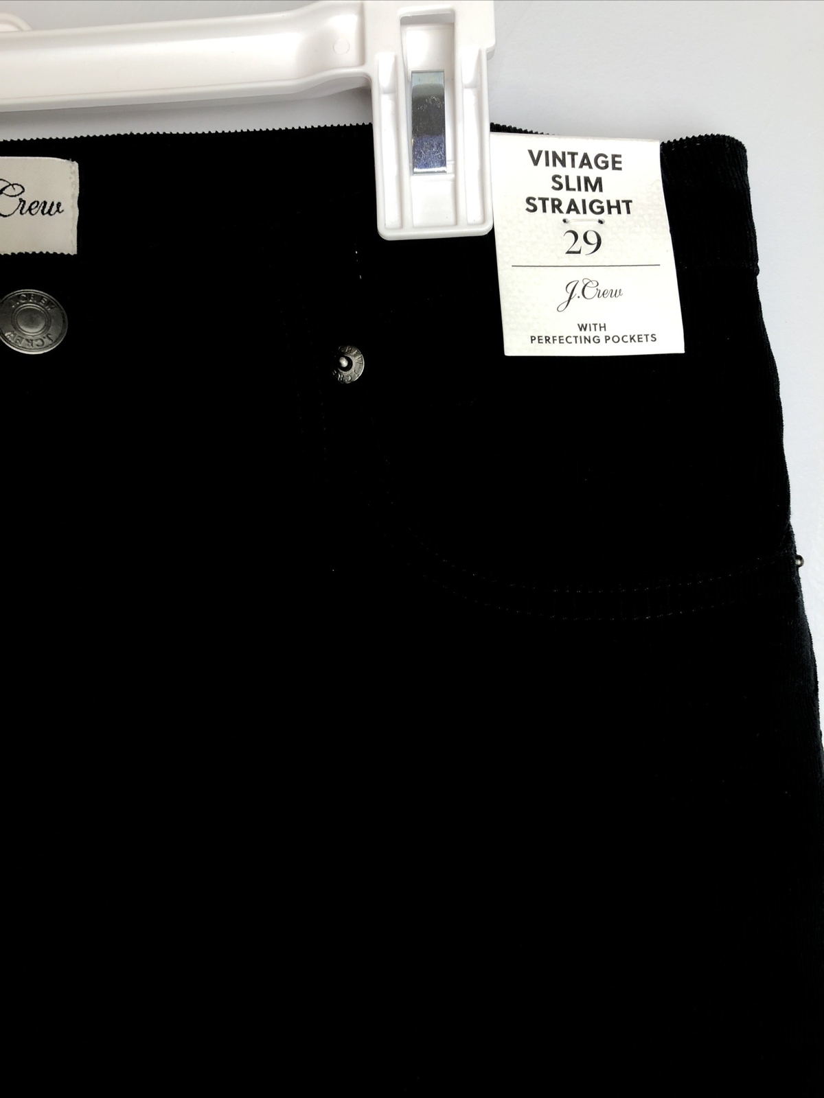 NWT J. Crew Vintage Slim Straight Black Corduroy Pants Size 29 B2