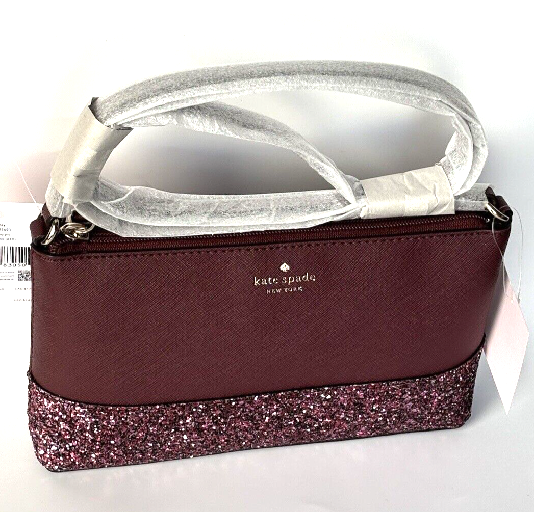 Kate Spade Greta Court Glitter Ramey Crossbody Bag Cherrywood DETAILS 5.7"h x 9.4"w x 1.4"d saffiano pvc capital kate jacquard lining crossbody with zip top closure interior back slip pocket style #wkru5693 👉Please review all photos, dimensions and descriptions thoroughly before your purchase.👈 Thank you! Please feel free to contact me if you have any question about this product before your purchase! I respond very soon. *Please note that the color in pictures might differ slightly due to lighting, flash and screen resolution. From very clean, Pet and smoke free household!