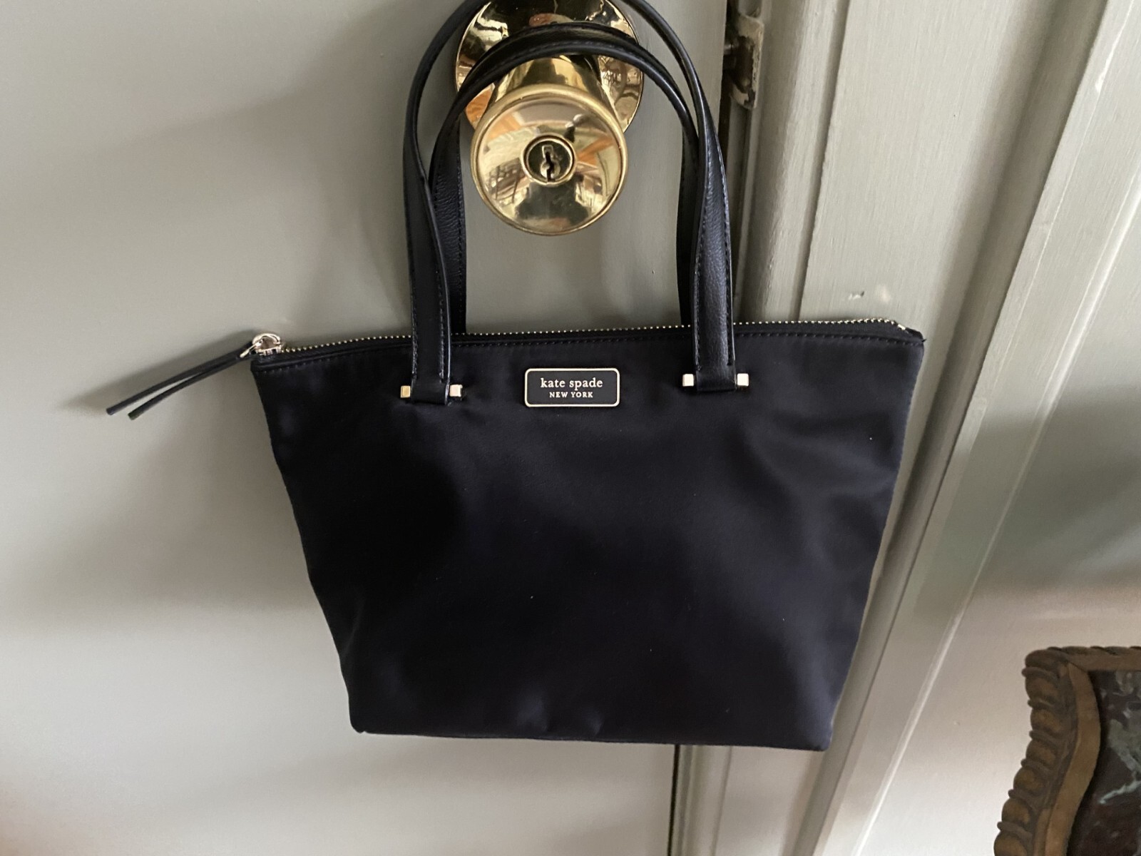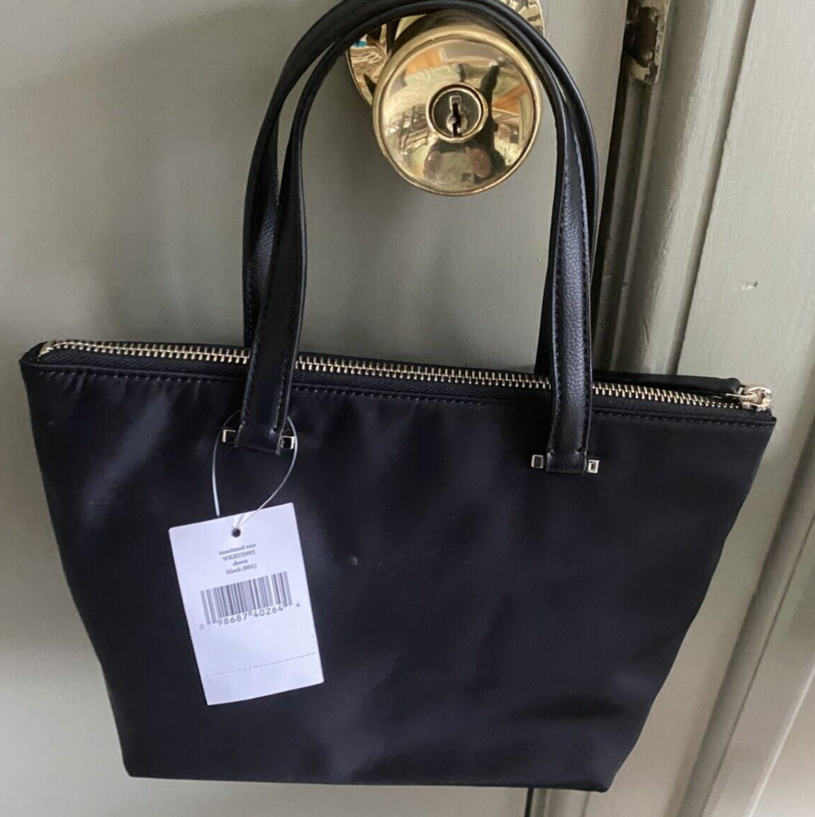 THIS IS A NEW WITH TAG KATE SPADE NEW YORK SMALL BLACK NYLON DOUBLE HANDLE INSULATED TOTE, APPROX. 11" X 7" X 4".