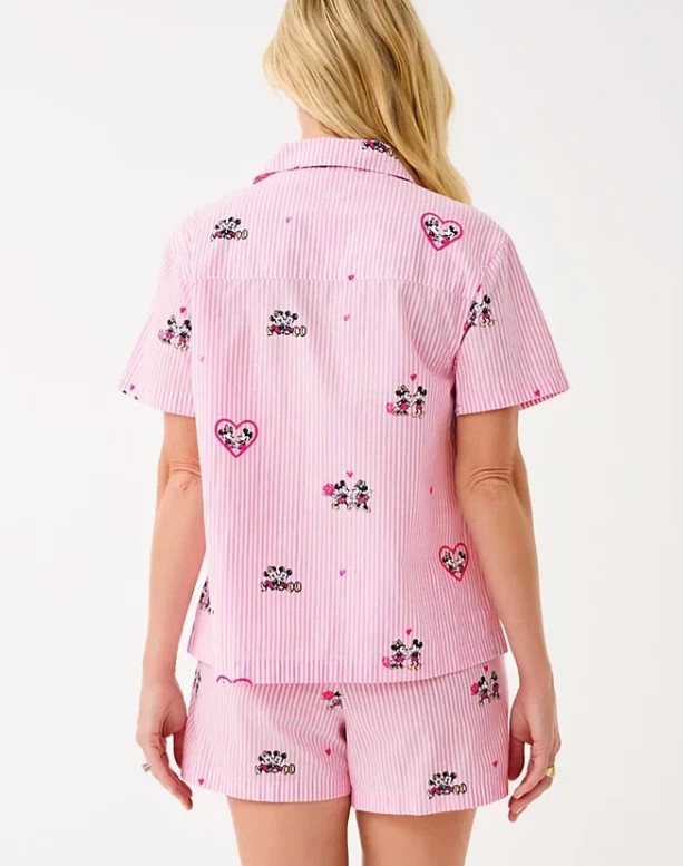 Mari Pajama Button-Up Shirt Easy fit, pajama button-up shirt with a collared neckline and a lace trimmed front patch pocket. 25 1/2" in length (based on a size small/4). Skims the body. Roomier fit. Imported. Please note: due to the vibrancy of Lilly Pulitzer colors, this product’s color may vary slightly when seen in person. SKU: 197367328196 Elly Pajama Boxer Mid rise pajama boxer with an elastic waistband and front slant pockets. 4" Inseam. Imported. Please note: due to the vibrancy of Lilly Pulitzer colors, this product’s color may vary slightly when seen in person. SKU: 020411 Materials & Care : Lightweight Cotton Poplin (100% Cotton). Machine wash cold, delicate cycle, separately, or dry clean.