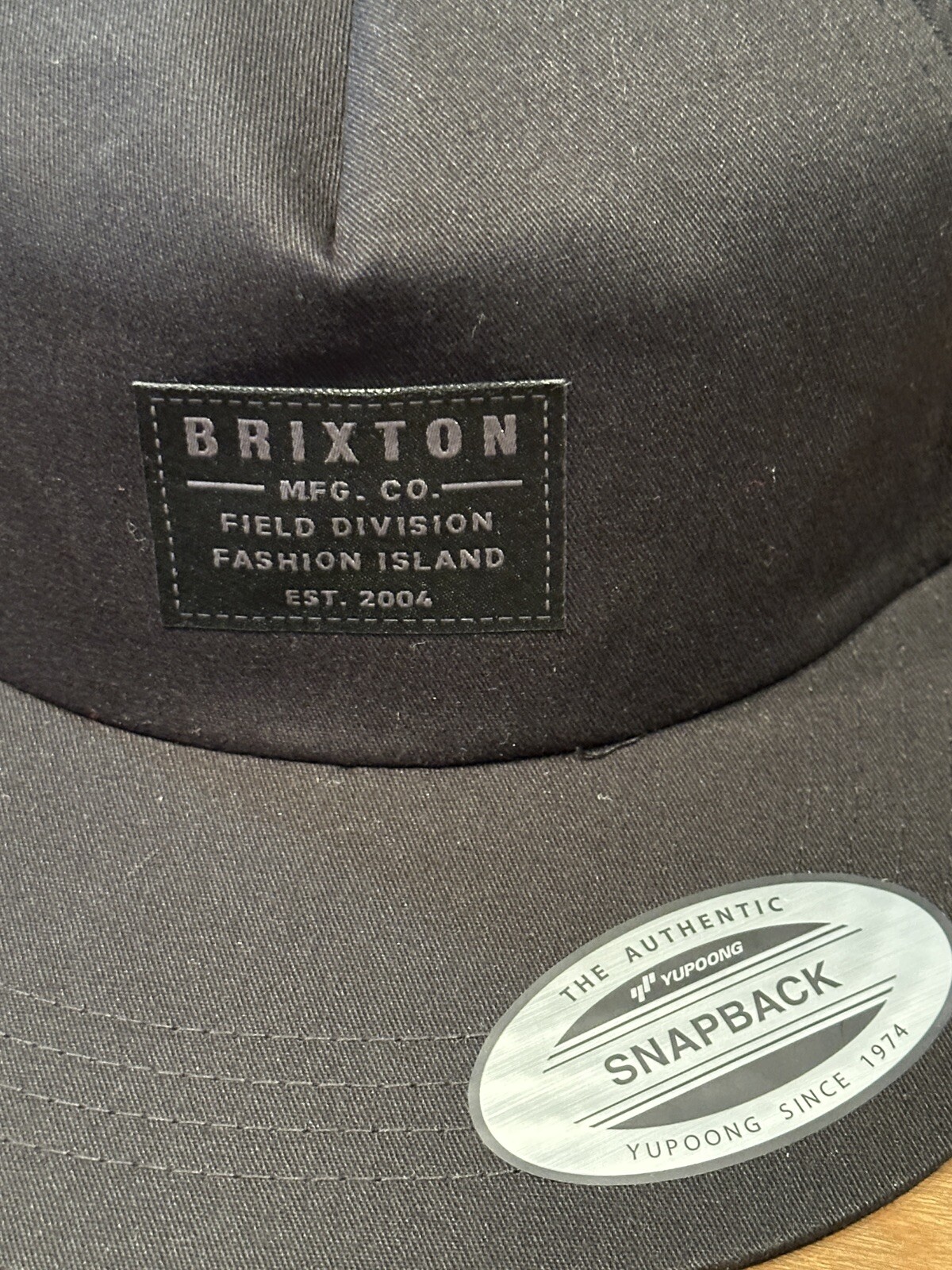 This Brixton snapback cap is the perfect addition to any casual outfit. With a solid black color and the Brixton brand logo on the front, it is a stylish accessory for any occasion. The cap is made from a blend of polyester and cotton, with 60% cotton and 40% polyester fabric type, making it comfortable to wear all year round. The adjustable snapback feature ensures a perfect fit for all head sizes, and the one-size-fits-all size makes it a versatile accessory for any wardrobe. Whether you're running errands or hanging out with friends, this Brixton cap is a great choice to add some style to your outfit. MSRP on the tag is $35.00
