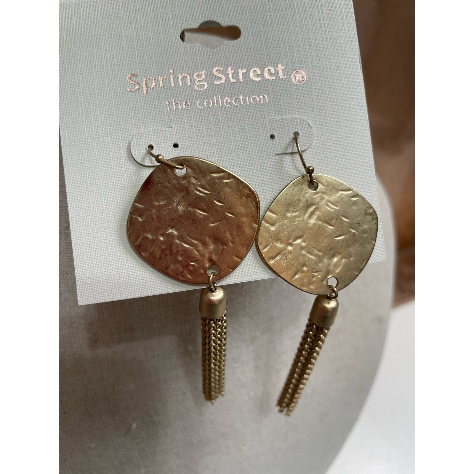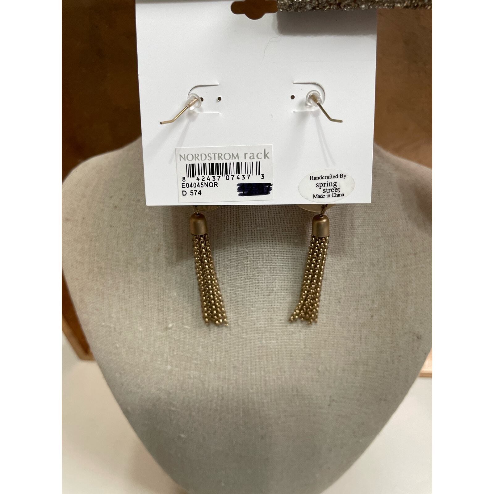 New with tags, Nordstrom Brand Spring Street the Collection Matte Gold Texture Disc & Chain Tassel Earrings. Handcrafted by spring street. Earrings length is 3".