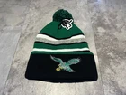 Sport your team spirit with this lush Kelly Green Philadelphia Eagles beanie. It's a throwback to the team's classic colors, perfect for die-hard fans looking to honor the Eagles' legacy. The hat is one-size-fits-most, ensuring a comfortable fit for all your game day activities. The beanie is designed with a soft fleece lining, providing extra warmth on those chilly game days. Whether you're at the stadium or just out and about, this NFL-approved cap is a must-have for any Philadelphia Eagles enthusiast. Keep the team pride going strong with this stylish and cozy headwear.