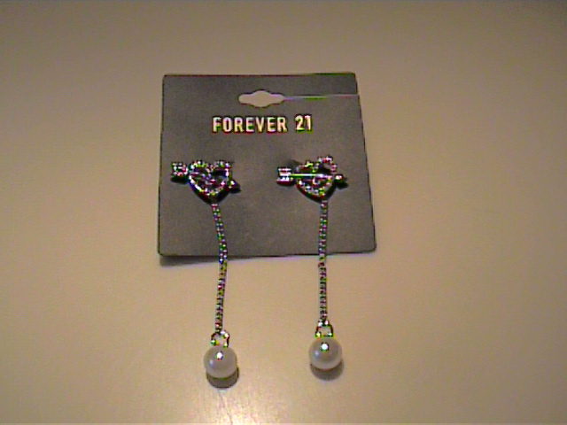 BEAUTIFUL NWT RHINESTONE HEART WITH STUD EARRINGS WITH PEARL DROP ON CHAINS IN EXCELLENT NEW CONDITION. MORE SPECTACULAR IN PERSON! DISCOUNT ON SHIPPING ON MULTI PURCHASES ...