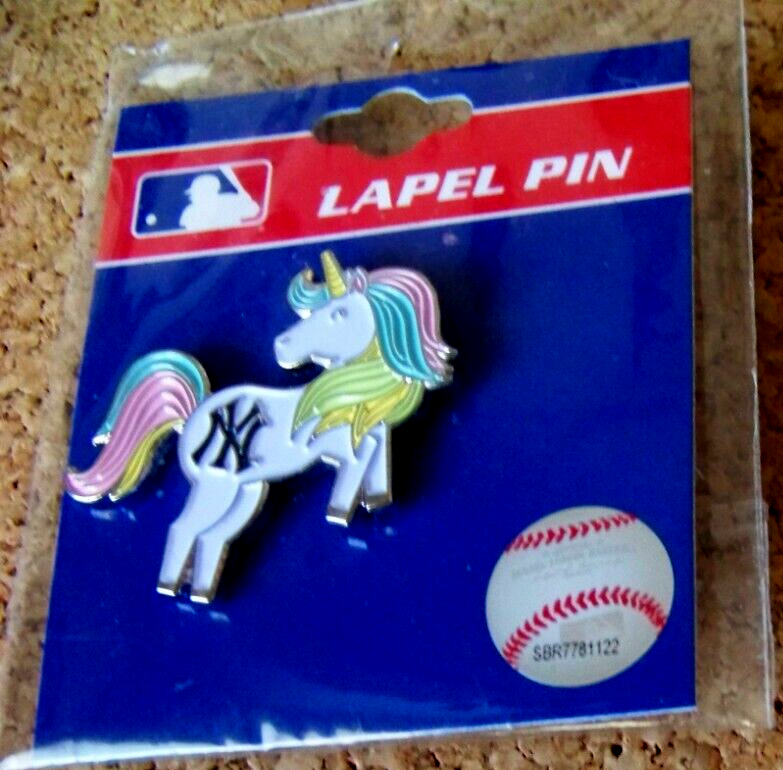 New York Yankees Unicorn pin NY logo lapel This MLB licensed, post and butterfly clip backed, silver tone, lapel pin measures about 1.5" wide, 1.4" tall. NEW, unopened. Don’t forget to click on my "Stores" link, next to my eBay name, to see other items I currently have listed for sale, or you can copy and paste this address into your browser: stores.ebay.com/highcountrycollectibles SHIPPING INFORMATION Shipping to U.S. addresses is FREE! HIGH COUNTRY COLLECTIBLES Since 1989 – A LEADER IN THE DENVER SPORTS MEMORABILIA MARKET. Check out my other auctions and listings, and keep an eye out for the different, unusual, and EXCLUSIVE items available nowhere else but from High Country Collectibles