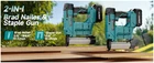 【2-in-1 Brad nailer】Cordless nail gun drives 5/8"–1-1/4" brad nails and 5/8"–1" crown staples with advanced impact technology. Perfect for wood, upholstery, and DIY. 【 Safe Design for Home Use】This cordless nail gun features a built-in safety nose that prevents accidental firing, protecting kids, pets, and users. Ideal for indoor projects, it’s a reliable battery powered brad nailer with added safety. 【Ergonomic & Lightweight – Easy to Handle】 cordless brad nailer is designed for comfort with an ergonomic grip that reduces fatigue. The lightweight design of this battery nail gun and electric brad nailer ensures precise control, making it perfect for long projects or DIY tasks. Package Listing: 1. Staple gun 1 (battery not included) 2. Staples U-nails x 800 PCS 3. Straight nails x 800 PCS Firing speed:120 pieces per minute Magazine capacity:100 pieces Nail type:Straight nails: 5/8" to 1-1/4"(F15-F32) Staples U-nails: 5/8" to 1"(416K-425K) Weight (battery not include): 1.97 kg