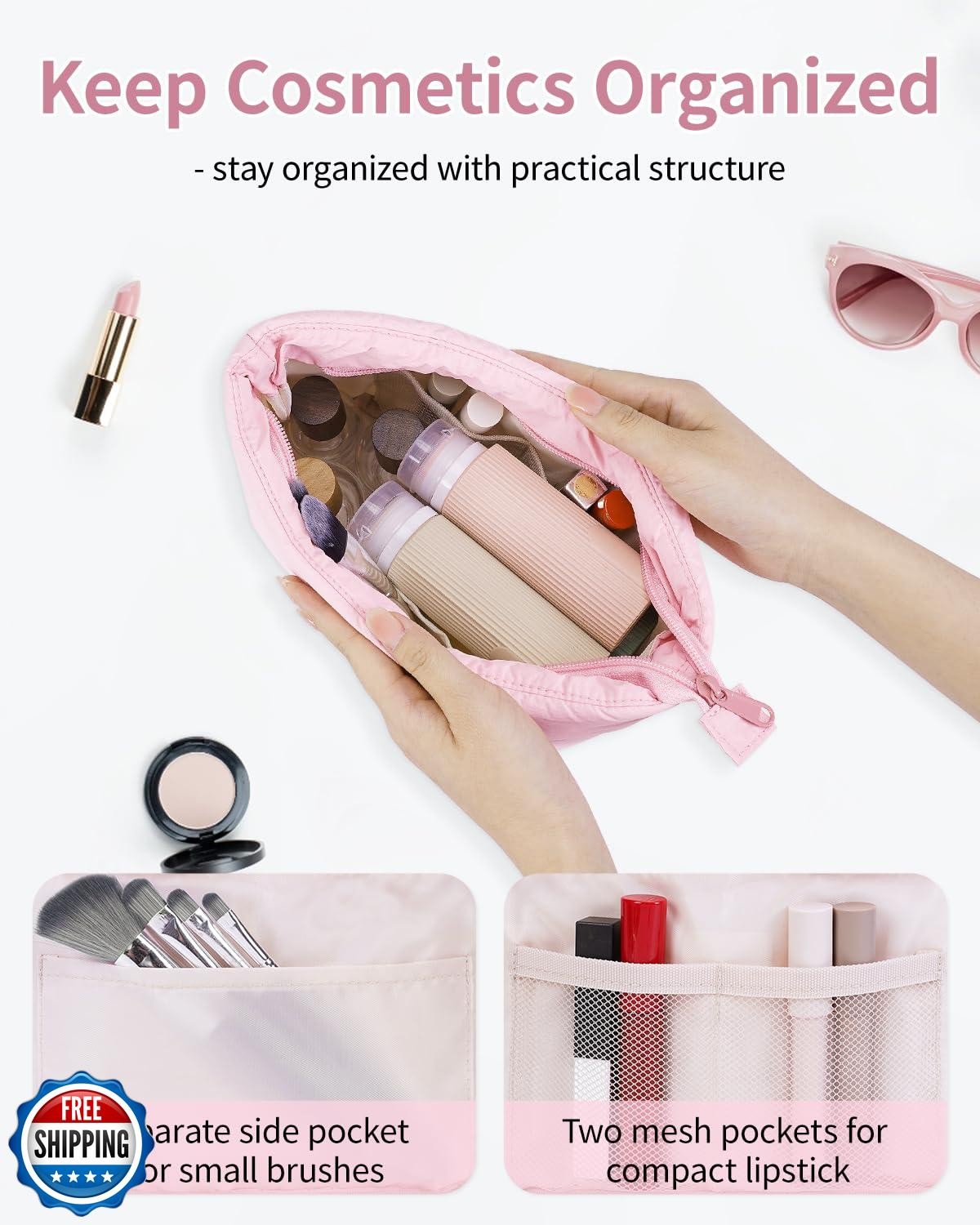 Narwey Puffy Makeup Bag for Purse Travel Women Girl, Puffer Cosmetic Bag Makeup Zipper Pouch, Cute Make Up Organizer Bags, Travel Toiletry Bag Toiletries (Dusty Rose) Features Decent Size - Please double check the size before purchasing to ensure it meets your expectations and avoid returns. Dimensions 7-10.8 x 6.3 x 3.9 in/17.7-27.4 x 16 x 9.5 cm, weighing only 0.15 lb. Not too big but not too small, large capacity yet compact, great for travel or daily use Makeup Organizer - The spacious design makes it super easy to open fully. Practical main compartment with 3 inner small pockets could neatly hold travel-size toiletries or skin-care products. It could fit sunscreen, 3oz lotion, cream, eyeliners, foundation, concealer, lipsticks, blushes, powder, eyeshadow pallet, mascara, lash curler and sponges Versatile - Sturdy, lightweight, roomy, which makes it great for business trips, travel, home use and more. Great as cosmetic bag, skincare bag, lipstick pouch, cable organizer bag, period bag, and pouch for medium or large purse Premium Puffy Fabric. Made of 100% nylon shell fabric, soft and water-resistant. Durable lining, reliable double zippers, and good stitching. Every detail is delicately made Great Gift Idea. Vibrant colors to choose. Great gifts for teen girls, bridesmaid, sister, teacher, mother, friends and family members on holiday like birthdays, Valentine's Day, Mother's Day, New Year, and Christmas Shipping Free & Fast Shipping: We offer free shipping to most of the USA with a normal delivery time of 3-7 days. However, due to the current situation, additional delivery time (up to 3 weeks) may be required for some items. Alternative Carriers: We may use alternative carriers (e.g., USPS, FedEx, UPS) to ensure your package arrives safely and on time. Due to the use of multiple carriers, we are unable to provide a tracking number automatically. Handling Time: Orders are processed and shipped within 1-2 business days of receiving cleared payment. Shipping Restrictions: Shipping to Alaska, Hawaii, Puerto Rico, Guam, and other US territories may incur shipping charges or delivery restrictions. Please contact us before ordering, or your order can be refunded/cancelled. State Restrictions: Certain items may not be shipped to California due to state regulations. Contact for Tracking Updates: If you require tracking updates or have any concerns about the delivery of your order, please feel free to contact us, and we will be happy to assist you. Return Policy 30-Day Hassle-Free Returns: If you are not completely satisfied with your purchase, you can return the item for free within 30 days of receiving it for a full refund or exchange. Easy Return Process: Contact us, and we will provide you with a prepaid return shipping label and detailed instructions. No Restocking Fee: There are no restocking fees for returns. However, the buyer is responsible for return shipping costs if the return is not due to a seller"s error. Refund Processing: Refunds will be processed within 1 business day of receiving the returned item in its original condition. Feedback Your feedback is extremely important to us. We strive to provide the best products and customer service possible. If you are satisfied with your purchase, please take a moment to leave us a positive review. If you have any concerns or issues with your order, please contact us before leaving negative feedback. We are committed to resolving any problems and ensuring your satisfaction. Contact Us If you have any questions or concerns, please feel free to reach out to our customer support team. You can contact us through the eBay messaging system. We are available Monday to Friday, 9:00 am to 5:00 pm EST, and we will do our best to respond to your inquiry within 24 hours. Thank you for supporting our small family business!